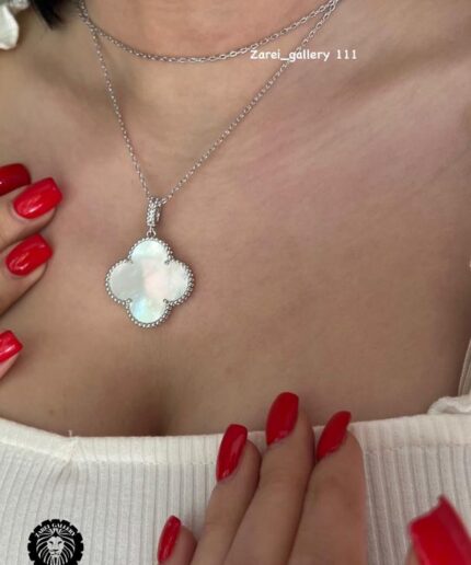 گردنبند ون کلیف طرح گل ون کلیف با پلاک داخل سنگ صدف