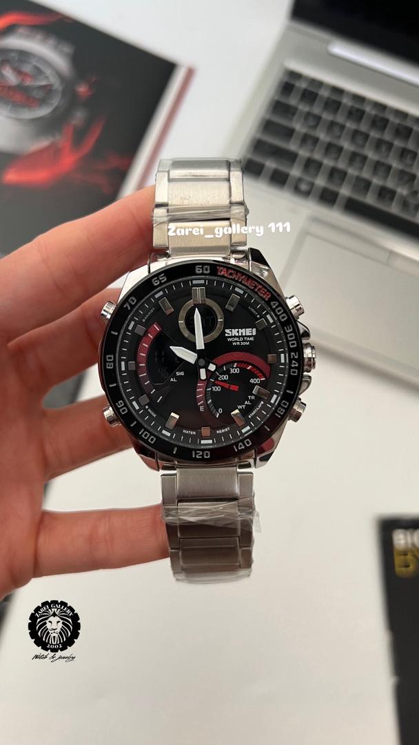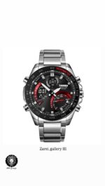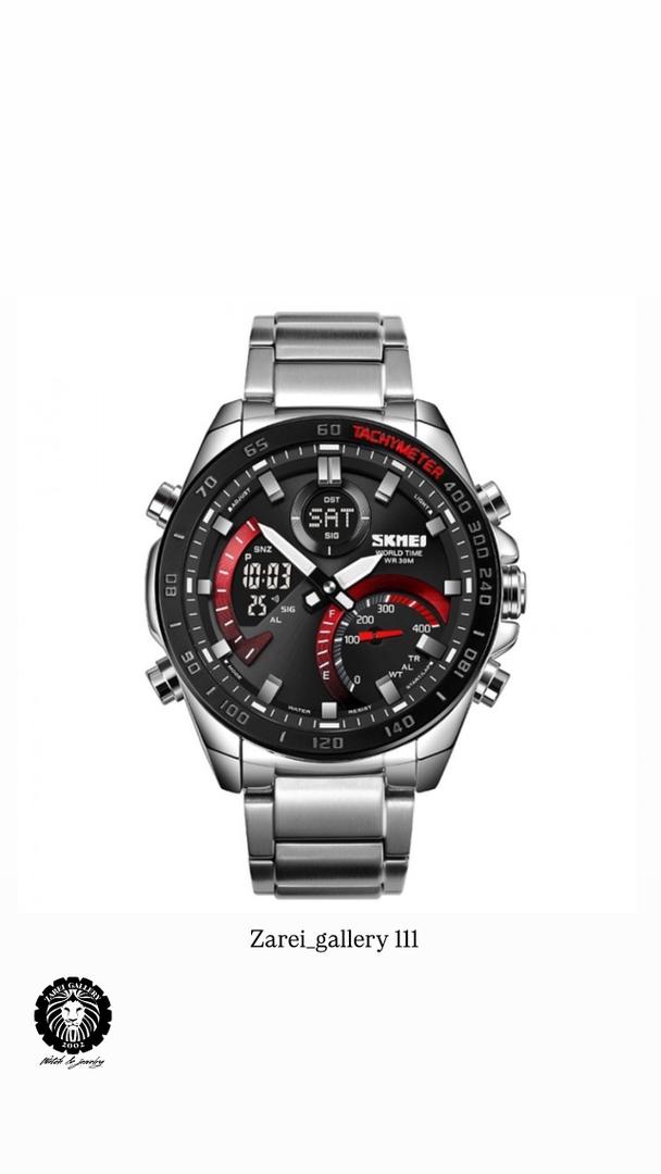 رنگ محصول قاب و بند تمام استیل با صفحه مشکی با نوشته ها قرمز و صفحه دیجیتال مشکی با نوشته های روشن