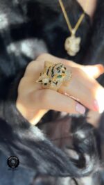 جنس محصول تمام استیل کاملا رنگ ثابت تمام نگینها مخراج بدون ریزش و میناکاری های مشکی و چشم سبز سنگ زمرد بدون کوچکترین تغییر رنگ