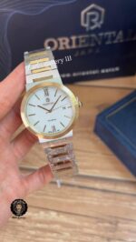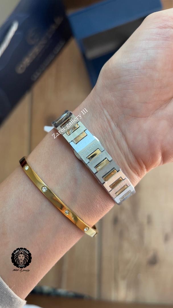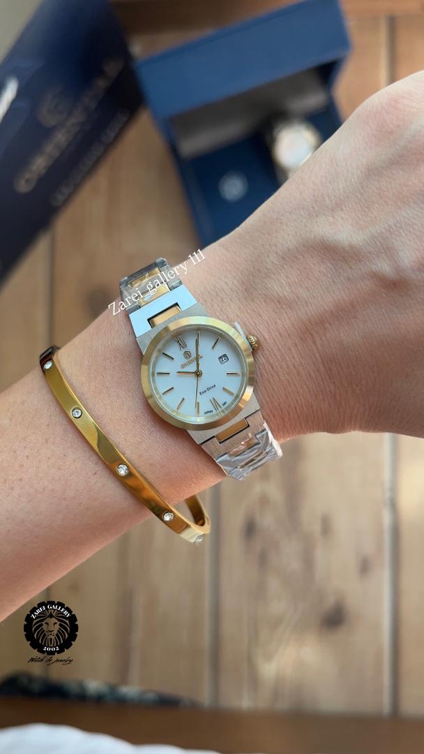 رنگ محصول دو رنگ طلایی استیل صفحه سفید صدفی و عقربه ها و اندکس طلایی