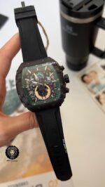 رنگ محصول قاب تیتانیوم مشکی مات صفحه طرح دار دور سبز بند سیلیکونی مشکی