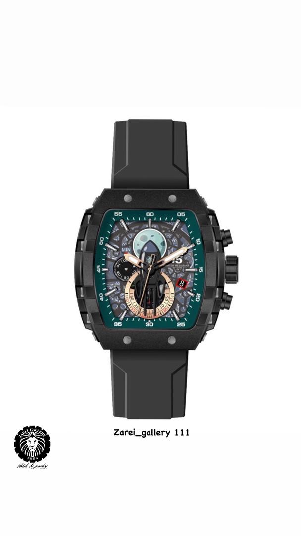 رنگ محصول قاب تیتانیوم مشکی مات صفحه طرح دار دور سبز بند سیلیکونی مشکی