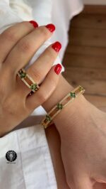 دستبند و انگشتر النگویی فول نگین دار ون کلیف