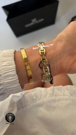 بند زنجیره ای قاب تمام طلایی با قفل دکمه ای فشاری با حک لوگو روی قفل