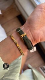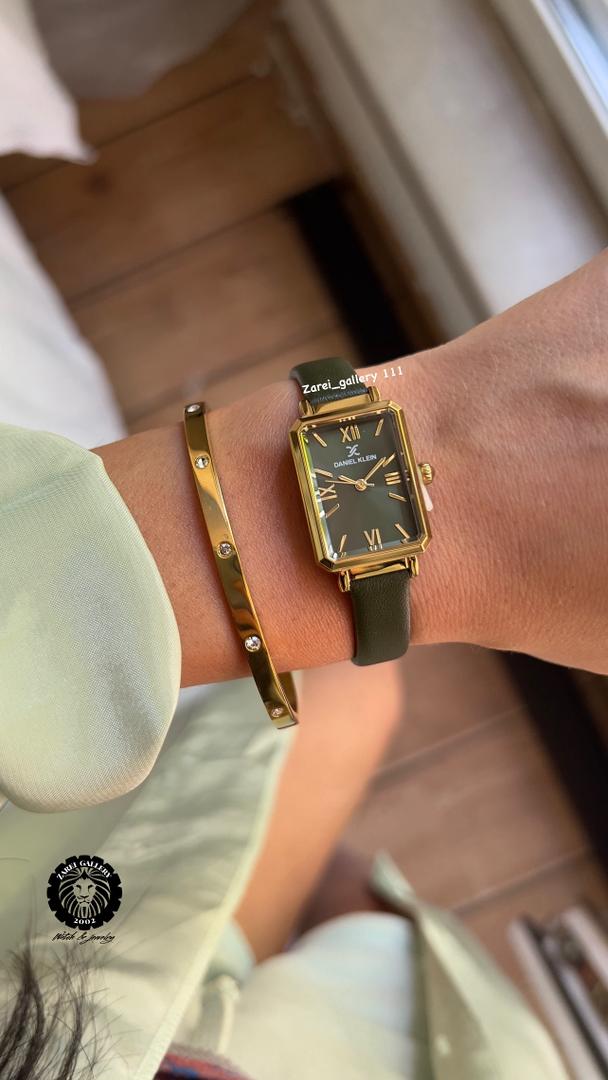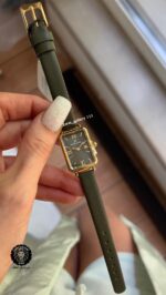 رنگ ساعت قاب طلایی و بند و صفحه سبز