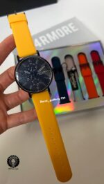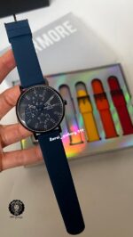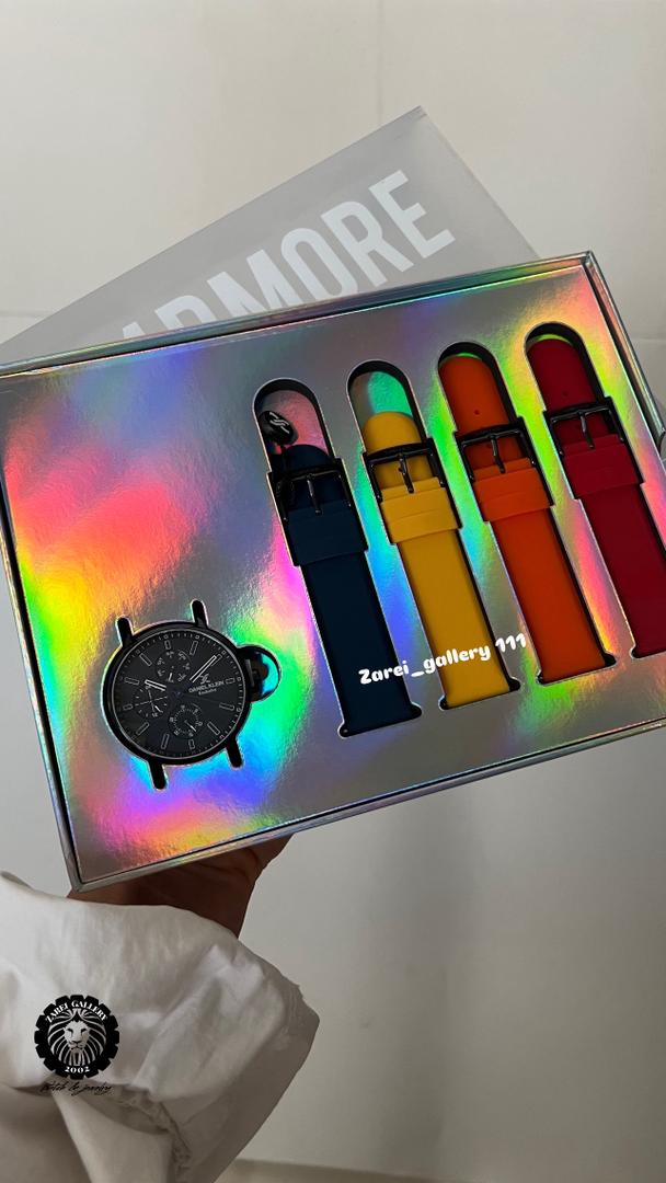 رنگ قاب ساعت مشکی صفحه مشکی ای با عقربه و اندکس سفید و دارای چهار بند رابر مجزا از بالا پین خور که به راحتی قابل نصب می باشد ( سرمه ای .زرد . قرمز .نارنجی )