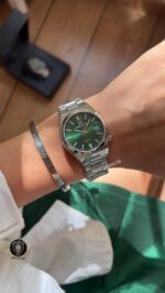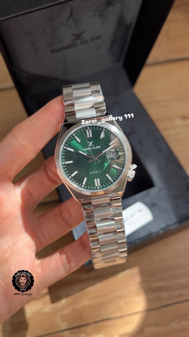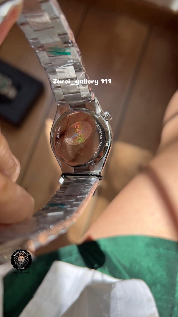 رنگ ساعت قاب و بند تمام استیل و صفحه سبز با اندکس و عقربه شبرنگ استیل