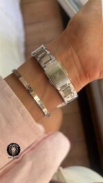 بند و قاب تمام استیل با قفل دکمه ای فشاری با حک لوگو روی قفل