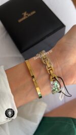 بند زنجیره ای قاب تمام طلایی با قفل دکمه ای فشاری با حک لوگو روی قفل