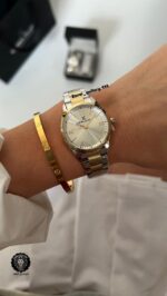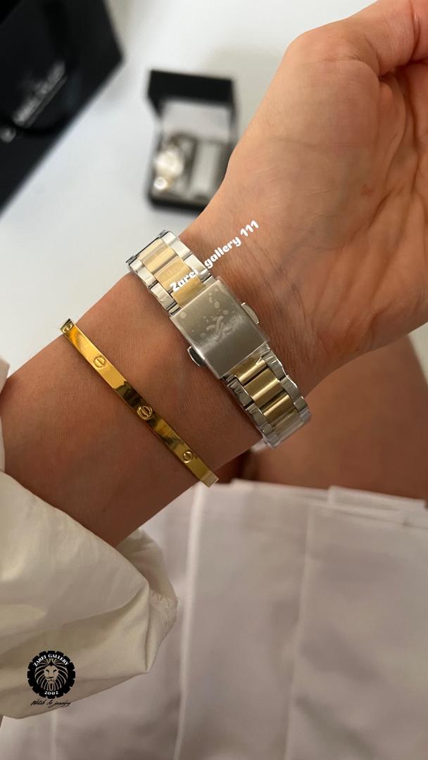 رنگ محصول ساعت دو رنگ طلایی صفحه نقره ای عقربه و اندکس طلایی