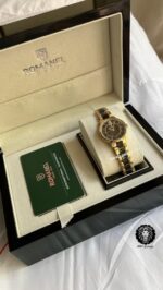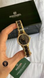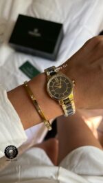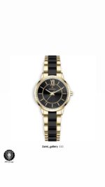 رنگ محصول قاب طلایی بند وسط سرامیک مشکی کناره طلایی صفحه مشکی با عقربه و اندکس طلایی