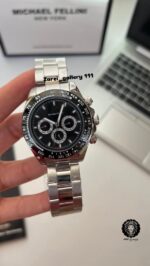 رنگ محصول قاب و بند تمام استیل با نوار دور قاب مشکی و صفحه مشکی و عقربه و اندکس استیل