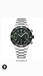 رنگ محصول قاب استیل رینگ دور مشکی و بند فلزی استیل صفحه برجسته سبز