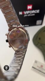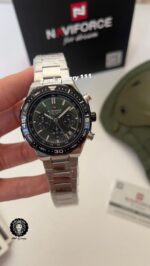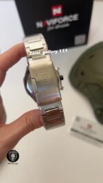 دارای بند فلزی با قفل فشاری دکمه ای با حک لوگو نیوی فورس روی قفل