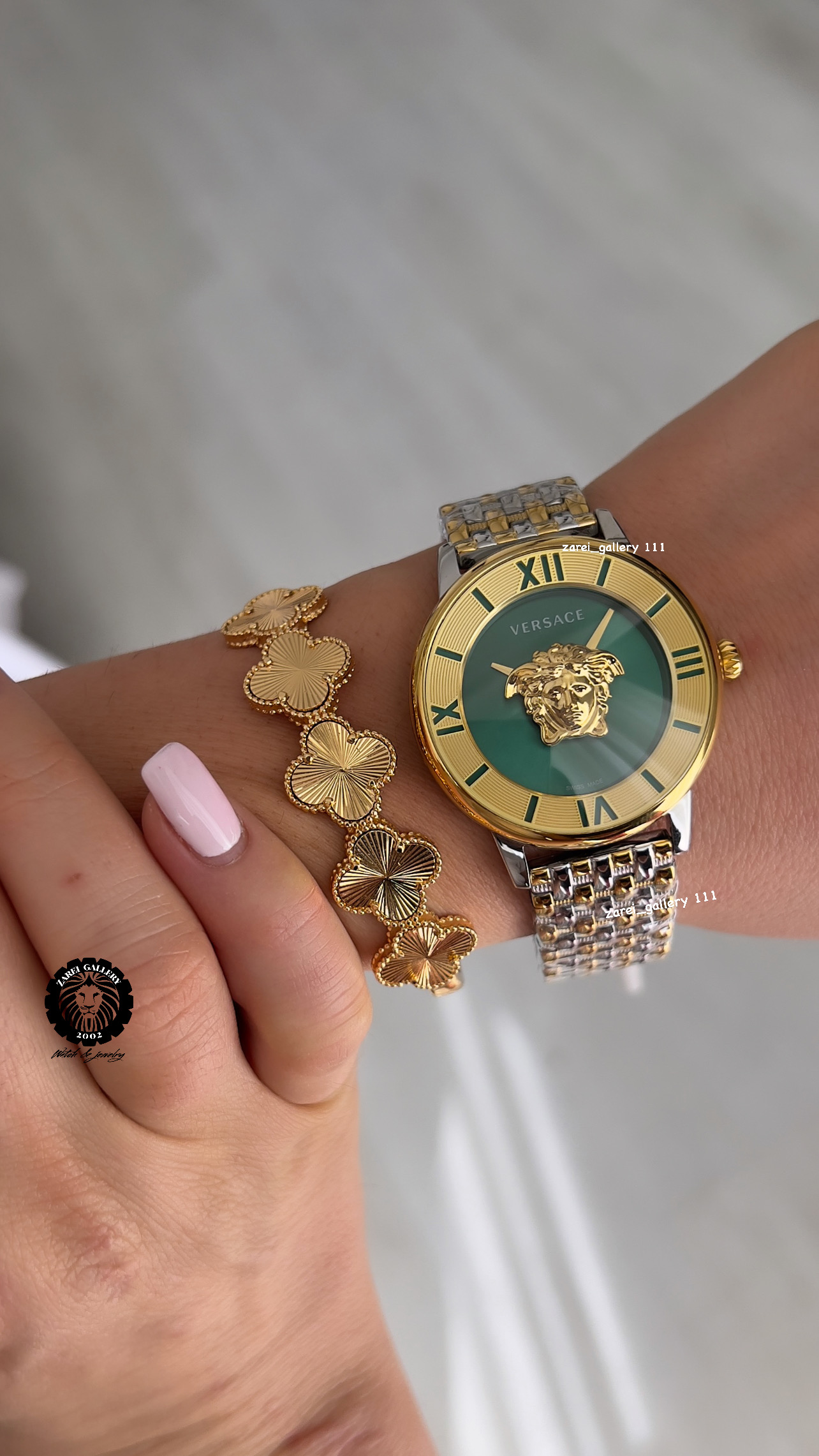 2️⃣ رنگ محصول دوم بند دو رنگ طلایی نقره ای با صفحه سبز