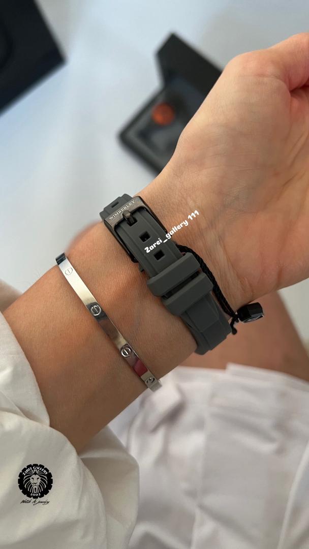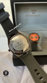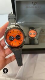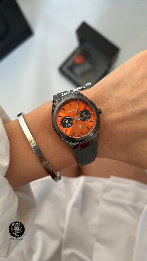 رنگ محصول قاب تمام طوسی پر رنگ تنکستنی صفحه نارنجی و بند سیلیکونی طوسی