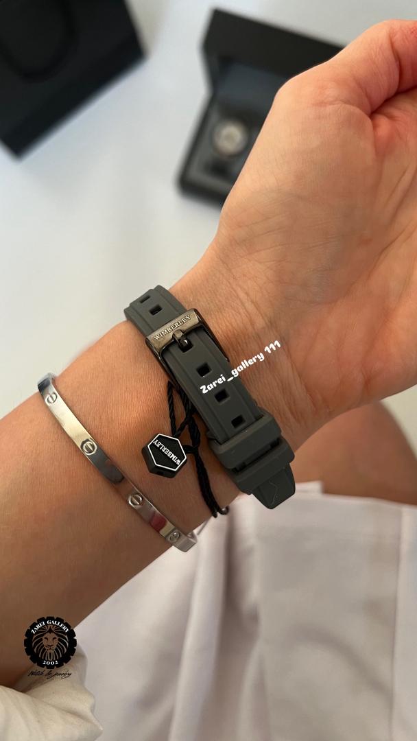 رنگ محصول قاب پایه طوسی پر رنگ تنکستنی رینگ دور مشکی صفحه طوسی نقره ای و بند سیلیکونی طوسی
