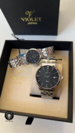 جنس بند و قاب از استیل بسیار با کیفیت صفحه مشکی و طراحی بسیار بالا با اندکس و عقربه های استیل