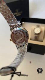 جنس بند و قاب از استیل بسیار با کیفیت صفحه سفید و طراحی و کیفیت بسیار بالا با اندکس و عقربه های طلایی