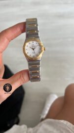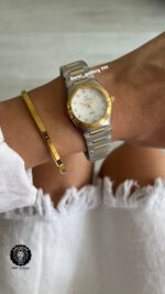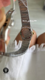 جنس بند و قاب از استیل بسیار با کیفیت صفحه صدف رگه دار شناسنامه دار و ۱۲ عدد نگین برلیان اصل و عقربه های طلایی