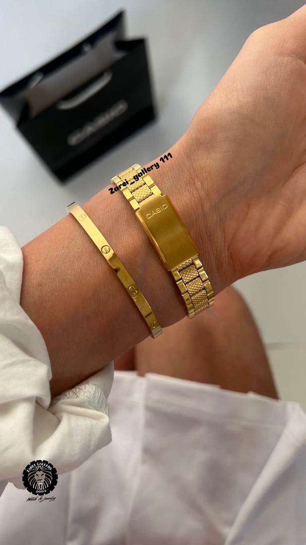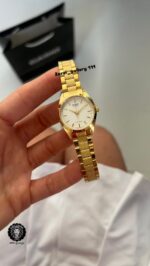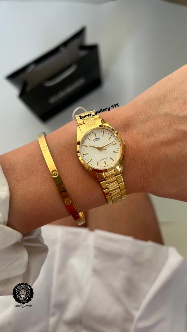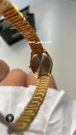 رنگ محصول قاب و بند تمام طلایی با صفحه سفید و اندکس و عقربه های طلایی