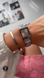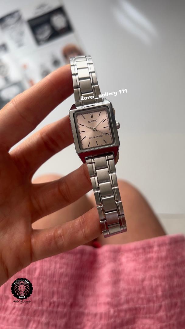 رنگ محصول قاب و بند تمام استیل بند فلزی با صفحه صورتی با شماره های مشکی و عقربه های استیل