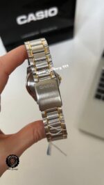 رنگ محصول قاب و بند دو رنگ استیل با طلایی با صفحه نقره ای با شماره های و عقربه های طلایی