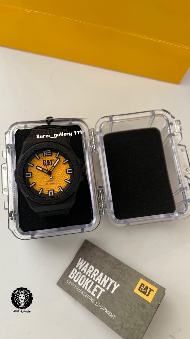 رنگ محصول قاب و بند سیلیکونی مشکی مات و صفحه زرد با اعداد و عقربه مشکی داخل شبرنگ