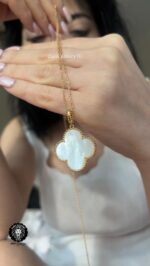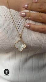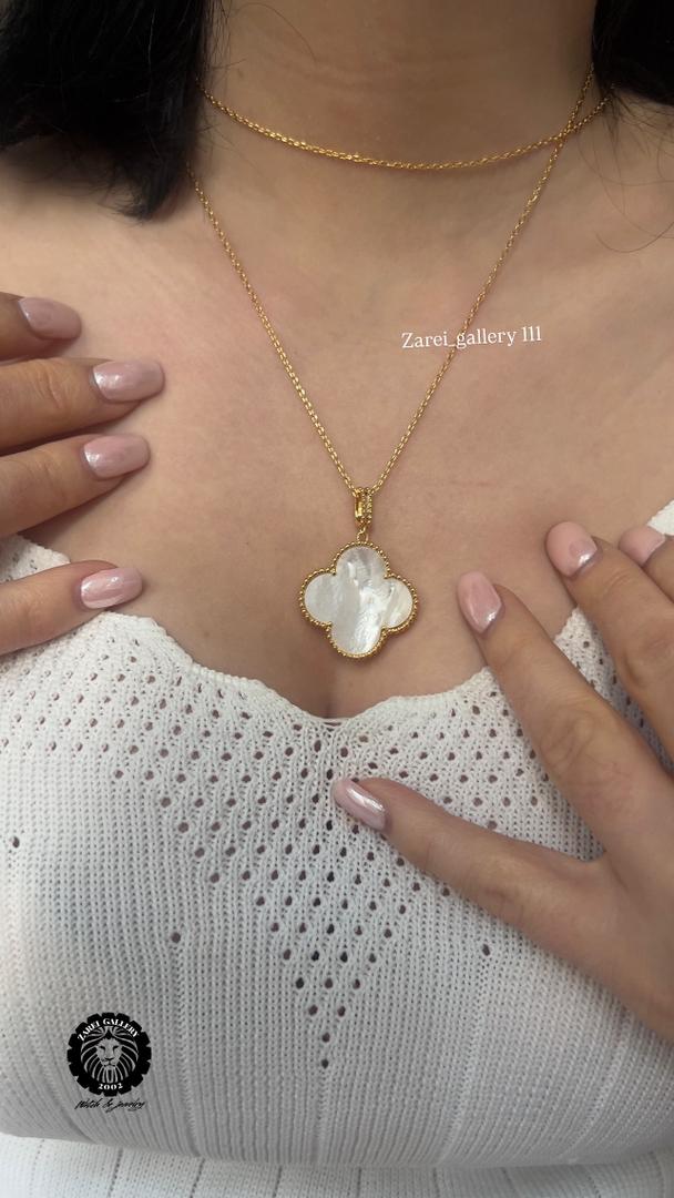 گردنبند تک گل ون کلیف با پلاک داخل سنگ صدف
