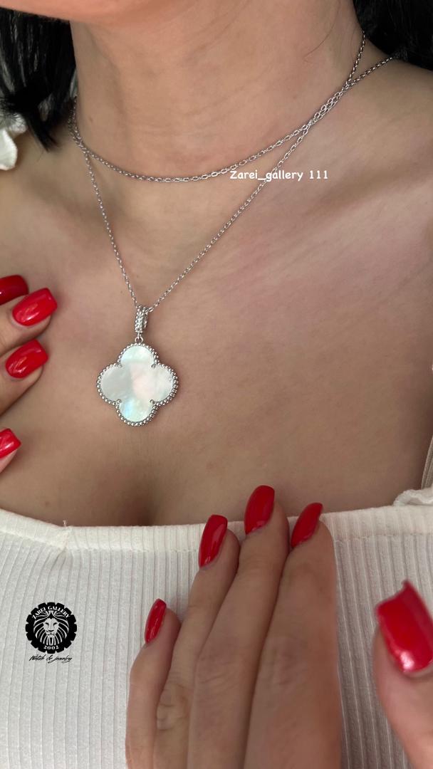 گردنبند ون کلیف طرح گل ون کلیف با پلاک داخل سنگ صدف