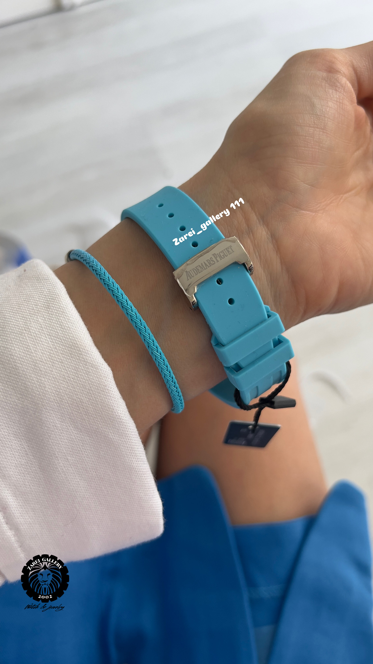 بند رابر سیلیکونی عطری با حک برند و مشخصات AP در پشت به همراه سگک قفلی باز شو فشاری با طراحی بینظیر و شکل ظاهری بسیار لوکس